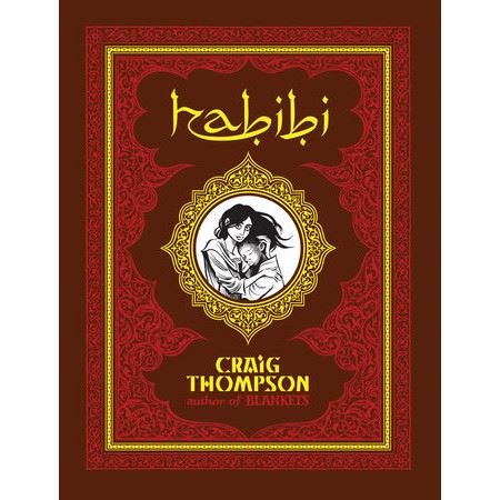 כריכה קשה "Habibi", based on a Middle Eastern fable, tells the story of Dodola, who escapes being sold into slavery and rescues an abandoned baby she names Zam. They live in isolation in an old boat in the desert. As they age their relationship shifts from mother and son, to brother and sister and eventually lovers. In the meantime however Dodola is forced to prostitute herself to desert traders in order to provide for Zam. When he seeks an alternative means of income Dodola is captured by the Sultan and Zam is forced into a quest to try and rescue her.