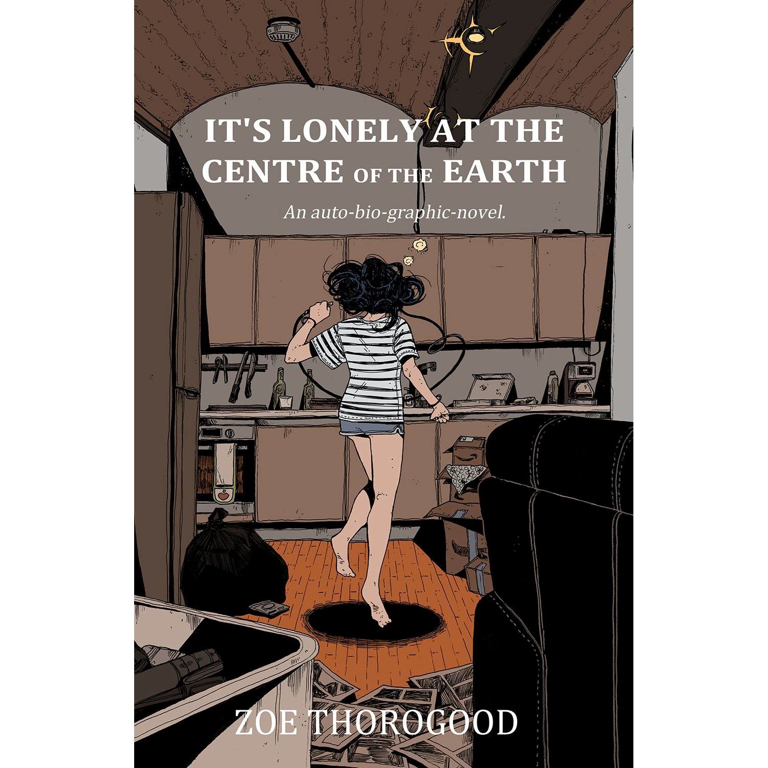 Cartoonist ZOE THOROGOOD records six months of her own life as it falls apart in a desperate attempt to put it back together again in the only way she knows how. IT'S LONELY AT THE CENTRE OF THE EARTH is an intimate metanarrative that looks into the life of a selfish artist who must create for her own survival.